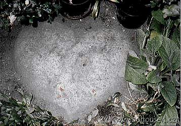 ...A nakonec nechť se ti sveze zrak na zem, kde uvidíš mezi prozelenalými kočičími hlavami podivný dlažební kámen: Kámen v podobě srdce... (G. V., 1938)