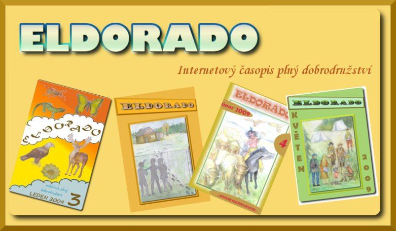 A co v našem časopisu vlastně naleznete? Na různém počtu stran jsou to především zajímavé články z různých oborů (literatura, historie, příroda, zeměpis, věda a vynálezy, záhady a tajemství, sport, western, hudba a umění, klubaření, vodáctví). Dále potom literární díla a slohové práce od mladých autorů, ať už povídky, nějaké básně, komiks či román na pokračování. Také můžeme nabídnout něco jako čtenářské deníky a hlavně nesmíme zapomenout na rozhovory s významnými osobnostmi, hlavně tedy z oblasti literatury - se spisovateli. Zatím se nám podařilo uskutečnit rozhovor se spisovatelem Jaroslavem Velinským – Kapitánem Kidem, Lubomírem Manem, Svatoplukem Hrnčířem, Ondřejem Neffem a s Mirko Junou. Do budoucna plánujeme samozřejmě další. Jak už jsme jednou zmiňovali, součástí Eldorada je také příloha Klubovní stezkou. V ní naleznete zejména motivační nápady pro činnost oddílu, fotky z výprav, zajímavé hry, rozhovory s vedoucími, tábornické dovednosti apod. Na této příloze s námi spolupracuje zhruba 5 různých oddílů a klubů. Velkým plusem pro náš časopis je také to, že máme několik kvalitních ilustrátorů, kteří buď ilustrují obálku jednotlivých čísel, nebo tvoří ilustrace pro vnitřní část časopisu. Také mimo to s námi spolupracuje další hrstka lidí. Máme i vlastní fungující Fan klub, který má několik desítek členů, stejně tak nás také naleznete na sociální síti Facebook, kde máme členů ještě o něco více. Pokud jsem se vám zalíbili a chcete se o nás dozvědět více, navštivte naše webové stránky www.eldorado.wbs.cz, kde mimo jiné naleznete i archiv všech dosud vydaných čísel. Za redakci Eldorada sepsal Jan Šubrt – kontakt: casopiseldorado@email.cz |