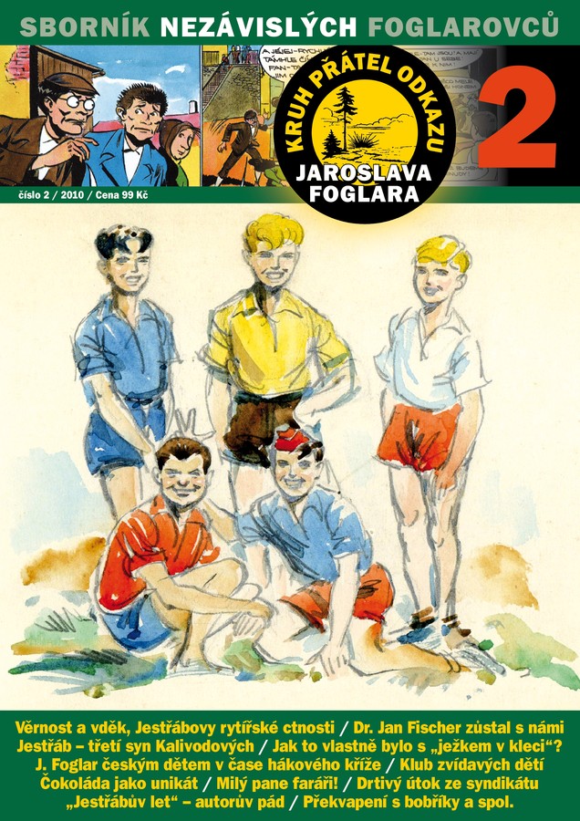 Vychází druhý Sborník nezávislých foglarovců[ Autor: Jiří Stegbauer - Jura | zařazeno: 9. 6. 2010 | přečteno 13582 ] Nakladatelství Ostrov připravilo ve spolupráci s Kruhem přátel odkazu Jaroslava Foglara v malém nákladu druhý Sborník nezávislých foglarovců, jehož premiéru uskuteční foglarovský badatel Luboš Trkovský na tradičním setkání ve Sluneční zátoce u Ledče nad Sázavou 19. 6. 2010. V jeho obsahu je řada nových, dosud neznámých nebo pozoruhodně doplněných objevů ze života a díla Jaroslava Foglara. Publikace mj. připomíná životní jubilea obou kreslířů Rychlých šípů, přičemž k připomínce dr. Jana Fischera je na obálce otištěna také nově objevená, dosud neznámá kresba Rychlých šípů z roku 1950! Z obsahu: Věrnost a vděk, Jestřábovy rytířské ctnosti Dr. Jan Fischer zůstal s námi Jestřáb - třetí syn manželů Kalivodových Jak to vlastně bylo s "ježkem v kleci"? Klub zvídavých dětí Čokoláda z Hlasatele jako unikát Milý pane faráři! Drtivý útok ze syndikátu Překvapení s bobříky a spol. Sborník má 32 stran formátu A4 tištěných tentokrát čtyřbarevně na silnějším křídovém papíru a jeho cena je 99 Kč.