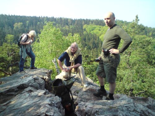 Na Brdy za první láskou Jaroslava Foglara[ Autor: Tomáš Hromádka - Krizmen | zařazeno: 2. 5. 2011 | přečteno 17384 ] Poslední dubnový den roku 2011 se členové Pražské pobočky Sdružení přátel Jaroslava Foglara, Akademie Jaroslava Foglara a jejich přátelé vydali na výpravu po stopách první lásky (skautské vůdkyně či rádkyně dívčího oddílu, se kterým se Dvojka na Brdech potkala) Jaroslava Foglara přesně po 85 letech. Členové známého skautského oddílu spolu se svým vůdcem výlet totiž tři dny na Brdech a v okolí prožili ve dnech 30. 4 – 3. 5. 1926. Současně si touto akcí foglarovci připomenuli první z kronikových „reserv“ = nikdy nenapsaných a nedopsaných zápisů v kronikách. Z této výpravy totiž s výjimkou kresbičky v záhlaví s „šifrou“ umístěnou v červeném srdíčku (!) neexistuje žádný zápis ani v oddílové kronice ani v Jestřábově deníku či jeho pozůstalosti. Většina z nás se sešla na Smíchovském nádraží, odkud jsme jeli do Dobřichovic, kde začínala jiná jarní brdská výprava Dvojky před 85 lety. Jelikož předpověď slibovala nejisté počasí, hned na začátku výpravy sledované stylově na mapě Marko Čermáka, jsme se seznámili s oddílovými nálepkami Hochů od Bobří řeky, které se prostřednictvím dávných dvojkařských výroků zaobírají oddílovými rčeními o počasí. Z Dobřichovic jsme vystoupali kolem vily Pellé na brdský hřeben k vyhlídce Hvíždinec (476 m.n.m.). Protože je odsud opravdu krásný výhled na okolní krajinu, a protože toto místo patřilo také k historicky oblíbeným dvojkařským místům, velká část doprovodného programu se odehrála právě zde. Především zde doslova a do písmene řádila Zelená příšera. Kdo na výpravě byl, ví, o čem mluvím. S neotřelým nápadem přišel Slávek, který nás nechal hádat, jakou zelenou barvou potřísnila příšera rákosí v Hoších od Bobří řeky. Navíc jsme následně všechny zelené tekutiny mohli ochutnat, což si všichni nenechali ujít. Na místě měla premiéru další taškařice – hymna Akademie Jaroslava Foglara (společně zpívaný refrén písně Z Bobří hráze od Jana Vyčítala). Rovněž byl přípraven test s třinácti otázkami, které se týkaly Brd, foglarovek, trampingu a vzhledem k tématu výpravy dvě otázky byly i na erotické téma. Účastníci výpravy v testu spíše propadli - slovy Slávka test dopadl p-ř-í-š-e-r-n-ě (vítěz vyhrál se sedmi body z celkových dvanácti možných). Pak následovalo badatelské rokování na téma okolností dávné výpravy. Alpín účastníky seznámil s dosud méně známými fakty (budou uvedena v samostatném článku) a rozproudila se živá diskuse nad záhadnou malůvkou v oddílové kronice s nic neříkajícím matematickým příkladem „2+6=8“. Do debaty se nečekaně zapojili i příchozí náhodní turisté, kteří se rovněž přišli na Hvíždinec podívat. Došlo také na čtení z Knihy o Dvojce, z oddílových kronik, vzpomínku na permutráček, a také na možné okolnosti pojmenování města Spálené Mlýny z Chaty v Jezerní kotlině. Před odchodem se ještě na svůj kraj poprvé podívalo nové vydání kultovní knihy všech milovníků Brd – Toulání po Brdech od největšího znalce a popularizátora tohoto území Jana Čáky – Bažanta. Celý program, který trval téměř tři hodiny, nevěřícně sledovala upletená Bublina, kterou jsme mohli prvně vidět na výstavě S Rychlými šípy nejen do Stínadel v roce 2005. Čas se však nachýlil, a tak, abychom mohli jít dál ve stopách Jaroslava Foglara, rychle jsme se sbalili a vyrazili směrem k baroknímu areálu na Skalce nad Mníškem pod Brdy. Cestou jsme potkávali desítky závodníků, kteří se účastnili cyklistického závodu Trans Brdy. Na Skalce se o slovo přihlásilo počasí, před bouřkou jsme se schovali v kostele sv. Máří Magdaleny a zdejším klášteře. Na zpáteční vlak Praha – Dobříš – Paříž do Mníšku pod Brdy jsme již docela spěchali. Zde skončila naše pouť, která se konala také na počest všech dávných, současných i budoucích lásek děvčat a kluků – vedoucích dětských oddílů nejrůznějších dob, věků i organizací. Nemohli jsme přesně stanovit či kopírovat trasu z dnů před osmdesáti pěti lety, neboť – jak již bylo uvedeno právě tento zápis – jako první vůbec – v kronice od Jestřába schází. Co jsme však cestou vlakem na rozloučenou viděli, bylo „Království“ Dvojky.