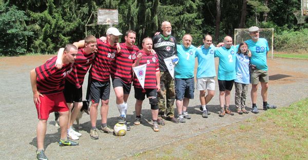 Fotbalový duel Rapid vs. Čechie ve Sluneční zátoce - 2:1[ Autor: Radim Kejík - Rolf | zařazeno: 23. 6. 2015 | přečteno 11254 ] Ač se v kuloárech spekulovalo, zda předseda SPJF Alpín provede čestný výkop či ne, dopadlo vše nakonec úplně jinak. Matador z Cibulek tajně od zimy trénoval s Klokany ve Vršovicích a v samotném zápase se představil v dresu číslo 7. Zkušeně si počínal při obranné činnosti a číhal na každý okamžik, kdy mohl odkopnout míč směrem k brance, ve které se tyčil dvoumetrový MV Bobr, publikem přezdívaný "Černý pavouk", což byla přezdívka nejlepšího brankáře světa 60. let Lva Jašina! Na druhé straně se však v neméně dobrém světle předvedl pražský gólman "Divočák", který s bekovkou na hlavě a tygřími skoky po míči připomínal Františka Pláničku. Do střelecké listiny se zapsal hned v úvodu střetnutí Sharp, který technickou střelou vymetl pavučiny v horním rohu branky Čechie! Rapid se i po tomto gólu nadále tlačil před branku, ale "Squadra azura" se výtečně bránila. A co víc, Menhart po jednom z rohových kopů byl velmi blízko vyrovnání. V druhé půli taktovku převzal tým v modrých barvách, a kdyby neměl Bobr natřené rukavice lepidlem z Malty, tak by jistě lovil míč ze sítě. Ovšem platilo staré známé "nedáš-dostaneš". Po Sharpově obloučku se do střelecké pozice dostal Rolf a z voleje propálil vše, co mu stálo v cestě! A mohlo být pro Čechii ještě hůře, když Soki hlavičkou orazítkoval pravou tyč Divočákovy branky.... S blížícím se konečným hvizdem rozhodčího Vládi Camra jako by se Rapid nechal ukolébat a byla z toho změna skóre. Robin se protáhl obranou soupeře a přesnou střelou dal svému družstvu naději. Na vyrovnání však již bylo málo času a tak se z vítězství 2:1 nakonec radoval Rapid! Diváci si mohli před zápasem zakoupit Sázenku za pouhých Kč 10,- a vsadit si na vítěze. V sobotu se prosázelo neuvěřitelných Kč 1644,- a 3 centy. Všechny peníze vybrané na sázkách věnuje pořadatel fotbalového zápasu - SPJF na boj proti rakovině prostaty, jak bylo uvedeno i na Sázenkách. Sestavy: Rapid - Bobr, Dingo, Vánočka, Rolf, Soki, Sharp x Čechie – Martin Rosol, Menhart, Alpín, Winoga, Žabka, Robin, Jan Machálek Střelci branek: 4. minuta Sharp - 1:0, 16. minuta Rolf - 2:0, 19. minuta Robin 2:1 Další informace o zápase na http://www.iklubovna.cz/clanky/vinohradske-derby-vyhral-tesne-rapid-nad-cechii-2788