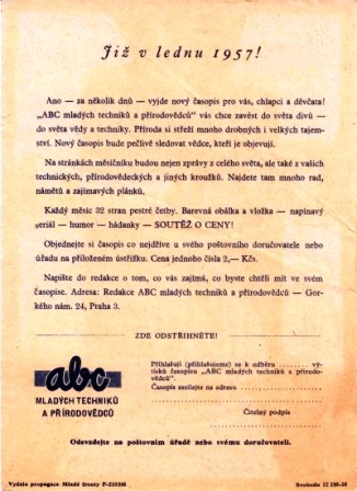 Ábíčko se do důchodu nechystá. 60 let časopisu[ Autor: Vlastislav Toman | zařazeno: 20. 1. 2017 | přečteno 12668 ] Pokud patříte ke čtenářům-pamětníkům a časopis ABC pravidelně nesledujete, pak vám možná uniklo, že má v lednu významné jubileum! Ano, právě před šedesáti roky v lednu 1957 (podle tiráže 20. ledna – pozn. red.) vyšlo první číslo nového časopisu ABC mladých techniků a přírodovědců. Žádná velká reklama nebo propagace se tenkrát nekonala. Jen pár letáčků a oznámení na školy. Sotvakdo si dovedl představit, jak bude takový časopis vypadat. Komu bude určen, napovídal už sám předlouhý název. Klukům a děvčatům, které zajímá příroda a technika nebo i věda. Že z toho nakonec zůstane jen to ABC, nebo kamarádské Ábíčko či (moravské a slovenské) Ábécečko, bylo nasnadě. A tak se také stalo. Už první číslo ABC zmizelo z prodejen tisku během pár dnů, v Praze dokonce za několik hodin! Start nového měsíčníku se tedy povedl, přesto se tehdy nedalo předpokládat, že se časopis dožije šedesátky a stane se druhým českým nejstarším časopisem pro děti. (Tím prvním je totiž Mateřídouška, jejíž první číslo vyšlo už v roce 1945 – pozn. autora) Ábíčko za ta léta prošlo mnoha změnami. Stručně připomenuto – nejprve zesílilo, když dostalo obálku s přílohami a vystřihovacími modely i pomůckami, pak zhublo, aby se mohlo stát čtrnáctideníkem. I ten však zakrátko nabral stránky a tak se zrodil nejsilnější časopis pro kluky a děvčata o 40 stranách. Navíc se do časopisu vkládaly nejrůznější přílohy, tzv. déčka, obtisky, nášivky, semena květin i jehličnanů, ba i tužky, klíče na tuby a dokonce měkké gramofonové desky. To byla sedmdesátá léta, snad nejbohatší na změny. Od padesáti tisícového nákladu, se kterým ábíčko startovalo v roce 1957, se náklad neustále zvyšoval a v osmdesátých letech dosáhl přes 300 000 výtisků. Časopis ABC však sehrál svoji roli i při změnách, ke kterým postupně docházelo v tehdejší Pionýrské organizaci ČSM. Od roku 1960 totiž organizoval pionýrské zájmové kluby – raketové posádky, hlídky přírody, dívčí kluby a další. Rozvíjela se tak pionýrská činnost v místě bydliště, i když i na školách a v jiných zařízeních. Až v sedmdesátých letech při vzniku Pionýrské organizace SSM byly kluby postupně omezovány, zato však některé poznatky z jejich organizování a činnosti byly včleněny do Výchovného systému PO SSM. Byly tu však i jiné aktivity, které časopis vytvořil nebo pomohl při jejich rozvoji. Ať už to byly závody minikár, turistické srazy čtenářů a klubů, návody a náměty pro zájmovou technickou a přírodovědnou činnost, podpora stanic mladých techniků a přírodovědců při průmyslových a zemědělských závodech, nebo – dodnes trvající a rozvíjející se – papírové modelářství! Na přelomu tisíciletí se poněkud pozměnil název časopisu na ABC, časopis generace 21. století. Jak každý vidí, to Ábíčko však zůstalo a přináší klukům a děvčatům, tak jako vždy, pohledy na nové trendy ve vědě, technice a přírodě. Má své webové i facebookové stránky, nabízí e-stránky s videozáznamy, aktualitami i archivem. Zůstaly však i tradiční papírové modely a komiksy, které k Ábíčku neoddělitelně patří už od jeho první čísla. Ano, vy, pamětníci, si zcela jistě povzdechnete: „Ale už to není časopis jako kdysi!“ Máte pravdu, vždyť ani ta dnešní doba není jako (kdysi) ta naše! Přesto – na zdraví jubilantovi! Vlastislav Toman, pamětník, (spoluzakladatel a šéfredaktor ABC v letech 1959-92)
