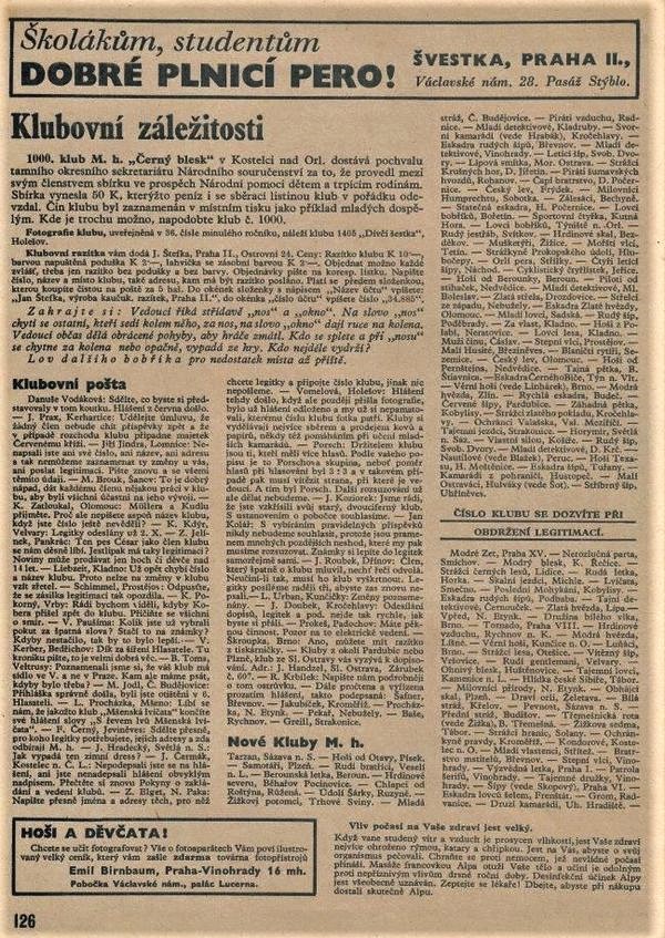Mladý hlasatel č. 8, ročník V, 21. října 1939 Klubovní stránka v rubrice Nové kluby M. h. uvádí mimo jiné - Strážci černých lesů, Lidice. Kluby měly svá čísla přidělovaná redakcí, ta byla zveřejňována spolu s názvem klubu (ten si volili samotní jeho členové) v časopise. Číslo Strážců černých lesů však neznáme, protože v tu dobu se již čísla klubů v Mladém hlasateli (až na zcela řídké výjimky) z určitých důvodů neuváděla. Jisté je jen to, že v říjnu 1939 se novým klubům přidělovala čísla kolem 3500. O týden později 9. čísle Mladého hlasatele je oznámeno, že vzhledem k tomu, že v poslední době přichází velké množství přihlášek, není již možné z prostorových důvodů seznam nových klubů otiskovat. Můžeme tedy být vděční za velkou náhodu, která lidický klub načasovala do časopisu o týden dříve. Nebýt toho, nevěděli bychom ani časový údaj o jeho vzniku. Kluci, kluci, podívejte, tady otiskli naše klubovní hlášení!