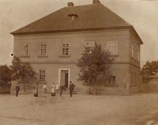 Těsně vedle kostela stála na návsi obecná škola, dvojtřídka. (Snímek pochází z doby před I. světovou válkou.) Sem – spolu s ostatními lidickými dětmi – chodili i členové klubu. Zde se 9. června 1942 naposledy učili. Druhý den už budovu školy zažili jen jako shromaždiště před transportem žen a dětí. Dětí mladších patnácti let. Ty starší již byly zavražděny spolu s muži. Které z dětí nosilo odznak a legitimaci člena KMH Strážci černých lesů?