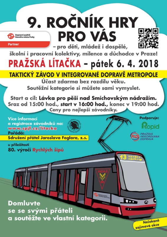 Pražská lítačka 2018 – IX. ročník závodu v používání pražské integrované dopravy v pátek 6. dubna[ Autor: Marek Skýpala - Winoga | zařazeno: 26. 3. 2018 | přečteno 10297 ] Závod v používání pražské integrované dopravy Pražská lítačka se uskuteční v pátek 6. dubna 2018 již IX. ročníkem. Cílem závodu pořádaného Pražskou pobočkou Sdružení přátel Jaroslava Foglara je zisk maximálního počtu bodů za projeté linky, zastávky a speciální bonusové zastávky převážně na území města Prahy a v jeho blízkém okolí. Každý závodník si sám volí svoji trasu a sbírá body podle její výhodnosti. Pro nejlepšího závodníka je nachystána cena. Soutěží se v absolutní kategorii, ale i v různých kategoriích, které si soutěžící sami vymyslí. Jedná se o tříhodinový závod. Start bude v 16 hodin z lávky mezi Smíchovským nádražím a tramvajovou zastávkou Křížová, nad železniční zastávkou Praha - Smíchov severní nástupiště. Na stránkách http://litacka.spjf.cz/ naleznete všechny potřebné údaje k úplnému pochopení pravidel a pokyny k registraci. V pátek 6. dubna 2018 se v Praze uskuteční již 9. ročník Pražské lítačky - soutěže v používání městské hromadné dopravy. S nápadem uskutečnit podobnou akci přišla již před několika lety skupinka okolo Jihomoravské pobočky Sdružení přátel Jaroslava Foglara. V Brně se oblíbená soutěž koná již tradičně pod názvem Šalinění. Jak Pražská lítačka, tak i Šalinění se ve svém názvu pokoušejí vystihovat regionální specifika hromadné dopravy. K předpokládatelnému dotazu na název soutěže sdělujeme, že Lítačka je skutečně termín původem mimopražský, který se do ní dostal s tzv. náplavami. Sdružení přátel Jaroslava Foglara jej použilo již v prvním ročníku, který se uskutečnil v roce 2010. Název Lítačka má evokovat jednak rychlost, s níž se závodníci pohybují po Praze, ale zároveň je použit jeden ze specifických termínů, který se používá v prostředí hromadné dopravy. Jelikož je slovo Lítačka výsledkem lidové tvořivosti, ani my si na něj nečiníme žádný nárok. Soutěž v používání městské hromadné dopravy je na první pohled asi pro většinu hodně tajuplné vysvětlení. Jistější proto bude, když ozřejmíme, že vítězem bude účastník, který za tři hodiny dokáže cestovat v co největším počtu dopravních prostředků, přestoupit, nastoupit či vystoupit na co největším počtu zastávek a případně navštívit i lépe hodnocené, bonusové zastávky. Svou cestu dokumentuje bločkem papírů, jejichž tvar odpovídá rozměrům pražské jízdenky. Při každém nástupu jeden papír otiskne v označovači. Pak se již musí jen včas vrátit na start a předat organizátorům bloček, který o jeho pouti džunglí městské dopravy bude vypovídat jasnou řečí. K soutěži mohou nastoupit jen předem přihlášení závodníci (děje se tak kvůli zajištění průvodních materiálů ke hře). Start se uskuteční v 16 hodin ze střední části lávky, která spojuje Smíchovské nádraží se zastávkou Křížová, přibližně nad železniční zastávkou Praha – Smíchov severní nástupiště. Již od 15. hodiny bude prováděna prezentace a vysvětlování pravidel. Konec je pak logicky v 19 hodin na stejném místě. Pro nejlepší závodníky jsou připraveny ceny. Akce je pořádána Pražskou pobočkou Sdružení přátel Jaroslava Foglara, s podporou Městské části Praha 5, Ropidu a Dopravního podniku hlavního města Prahy. V letošním roce je Pražská lítačka rovněž zapojena do oslav 80. výročí Rychlých šípů. Spolupracujeme i s kolektivy okolo serverů http://www.omh86.cz/ a http://www.prazsketramvaje.cz/, které se přímo zaměřují na pražskou hromadnou dopravu. Velmi si vážíme veškeré podpory a spolupráce. Jménem organizátorů vás všechny zve Winoga a Menhart