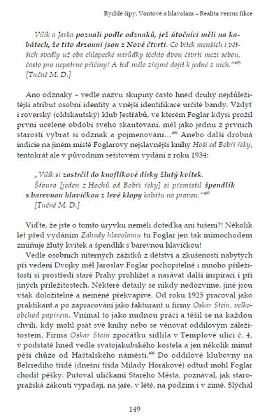 Nová odhalení ve třetím vydání knihy Mýtus zvaný Stínadla[ Autor: Zdeněk Bauer | zařazeno: 10. 6. 2018 | přečteno 11244 ] Pokud doma máte první (2010) nebo druhé vydání (2011) knihy Mýtus zvaný Stínadla od Miloše Dvorského, možná vás bude zajímat, zda má pro vás smysl si pořizovat třetí vydání tohoto titulu. Pokusíme se na to odpovědět. Existují totiž důvody, proč někteří mohou už teď říci, že to smysl má.- Co všechno je nového v třetím přepracovaném a rozšířeném vydání knihy Mýtus zvaný Stínadla Celý původní text prošel novou redakcí. Některé pasáže byly přeformulovány, některá místa byla opravena nebo upřesněna v souladu s nejnovějšími poznatky. V uplynulých letech se podařilo objevit řadu upřesňujících údajů, které získávají na hodnotě, teprve, když je zasadíte do souvislostí, případně jimi opravíte stávající výklad. Některé informace a obrazové přílohy jsme sice měli k dispozici už při práci na původním vydání, z různých důvodů však tehdy nebyly použity, nebo je nebylo možné použít. Některé úseky získaly jasnější obrysy díky práci na připravované druhé knize Miloše Dvorského Foglarovská tajemství, která by měla vyjít v příštím roce. Pan Dvorský měl rovněž možnost využít některé naše nevyužité materiály, které jsme shromáždili při rešerších pro naši knihu Klub zvídavých dětí a také naše materiály zpracované pro loňskou konferenci Foglar a náboženství. - Text knihy Mýtus zvaný stínadla je nyní výrazně rozšířen Oproti předešlému vydání byl původní text rozšířen asi o třetinu, tj. přibližně o 90 normostran. Zde se dozvíte nové informace, v mnoha případech zcela neznámé. Mezi zajímavá zjištění patří například informace, že prvním vedoucím redaktorem Malého Hlasatele nebyl doktor Mencák. Přečtete si také o tom, že symboly žlutého kvítku a špendlíku s barevnou hlavičkou použil Foglar v jednom ze svých textů už deset let před vydáním Záhady hlavolamu. Třetí vydání knihy Mýtus zvaný Stínadla obsahuje také ukázky zcela neznámých článků Jaroslava Foglara pro společenský dámský (!) časopis Hvězda československých paní a dívek a dozvíte se, jak výrazný vliv to mělo na jeho další kariéru. Zcela nový rozměr dostává kniha díky hlubšímu ponoření do produkce meziválečné brakové literatury, kterou Jaroslav Foglar s oblibou četl. Výrazně je rozšířena také pasáž věnovaná Foglarovu koketování se spiritismem a nadpřirozenem. Pro čtenáře bude zajímavé číst například Foglarův deníkový záznam, ve kterém naznačuje, že se osobně účastnil spiritistické seance. Další nové informace jsou v knize uvedeny i k tajemství legendárního ježka v kleci. Stranou různých doplnění nezůstaly ani zprávy o pražských Františkánech a Vontech… - Osm desítek nových obrazových příloh Kromě výrazného textového rozšíření je třetí vydání knihy Mýtus zvaný Stínadla doplněno o asi 80 nových obrazových příloh. Když to celé sečteme, výsledkem je, že zatímco předešlé druhé vydání Mýtus zvaný Stínadla mělo pouhých 238 stran, třetí vydání má 376 stran! To znamená, že přibližně jednu třetinu nového vydání knihy Mýtus zvaný Stínadla tvoří zcela nový textový a obrazový obsah. Zbylé dvě třetiny původního obsahu byly výrazně upraveny. V jistém smyslu dává nová podoba knihy celému výkladu zcela novou dimenzi. - Rejstříky – Potrava pro badatele Za významný přínos třetího vydání považujeme také jmenný a věcný rejstřík v závěru knihy. Jedná se sice jen o několik stran. Pro milovníky pátrání je to však jedinečná pomůcka. S pomocí rejstříků mnohem snáze dohledáte pozapomenutou nebo nově hledanou pasáž. Původně jsme o rejstřících do této knihy neuvažovali. S jejich výrobou je spojeno množství práce, snadno vznikne nějaká chyba, takže kontroly jsou nekonečné atd. Žádný rejstřík není dokonalý. Někteří čtenáři v nich navíc neumějí hledat. Pravdou nicméně je, že kniha s rejstříky má pro řadu čtenářů výraznou přidanou hodnotu. Nakonec rozhodl sám iniciátor projektu, pan Miloš Dvorský, když viděl naši novou foglarovskou knihu Klub zvídavých dětí, která rejstříky má. Hned je chtěl ve své knize taky. A tak je tam má a čtenáři samozřejmě spolu s ním. S pomocí rejstříků si navíc v knize můžete sami dohledat i některé další souvislosti, které v textu knihy nejsou přímo rozepisovány. Třetí vydání knihy Mýtus zvaný Stínadla tak představuje bohatý foglarovský materiál pro každého, kdo chce s foglarovkami prožít nové vzrušující dobrodružství. - Kupovat, nekupovat ? Máte doma první nebo druhé vydání knihy Mýtus zvaný Stínadla? Čtenář, který si předešlá vydání pořídil bez bližšího zájmu o foglaring, možná nepocítí žádné nutkání utrácet za precizovanou a rozšířenou verzi toho, co už mu doma někde ve skříni leží. Nové vydání knihy Mýtus zvaný Stínadla by však podle našeho názoru nemělo chybět v žádné knihovně, jejichž majitelé svůj vztah k foglarovkám a k hodnotám, které reprezentuji, berou vážně a jsou pro ně živé. Mezi takové mohou patřit například aktivní vyznavači a příznivci Foglarova díla, pakliže mají foglarovky v jejich životě nadále v nějakém smyslu důležité místo. Automaticky by si třetí vydání knihy měli podle našeho názoru pořídit a seznámit se s ní všichni, kteří se o Foglara zajímají do hloubky. - Limitované vydání pro vážné zájemce Pokud jde o sběratele, ti možná ocení, že se v jistém smyslu jedná o limitované vydání. O distribuci prostřednictvím velkoobchodní sítě zatím neuva
