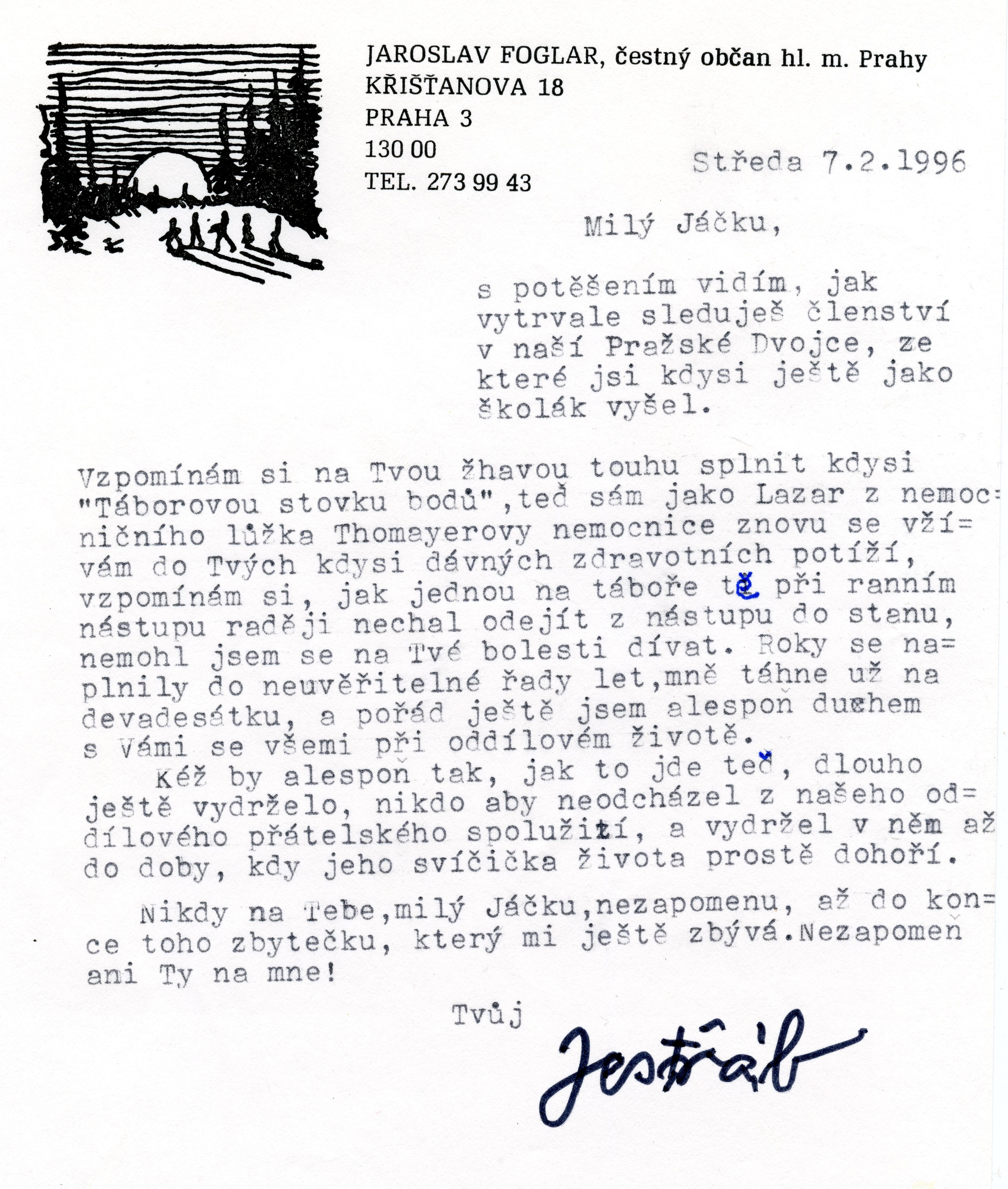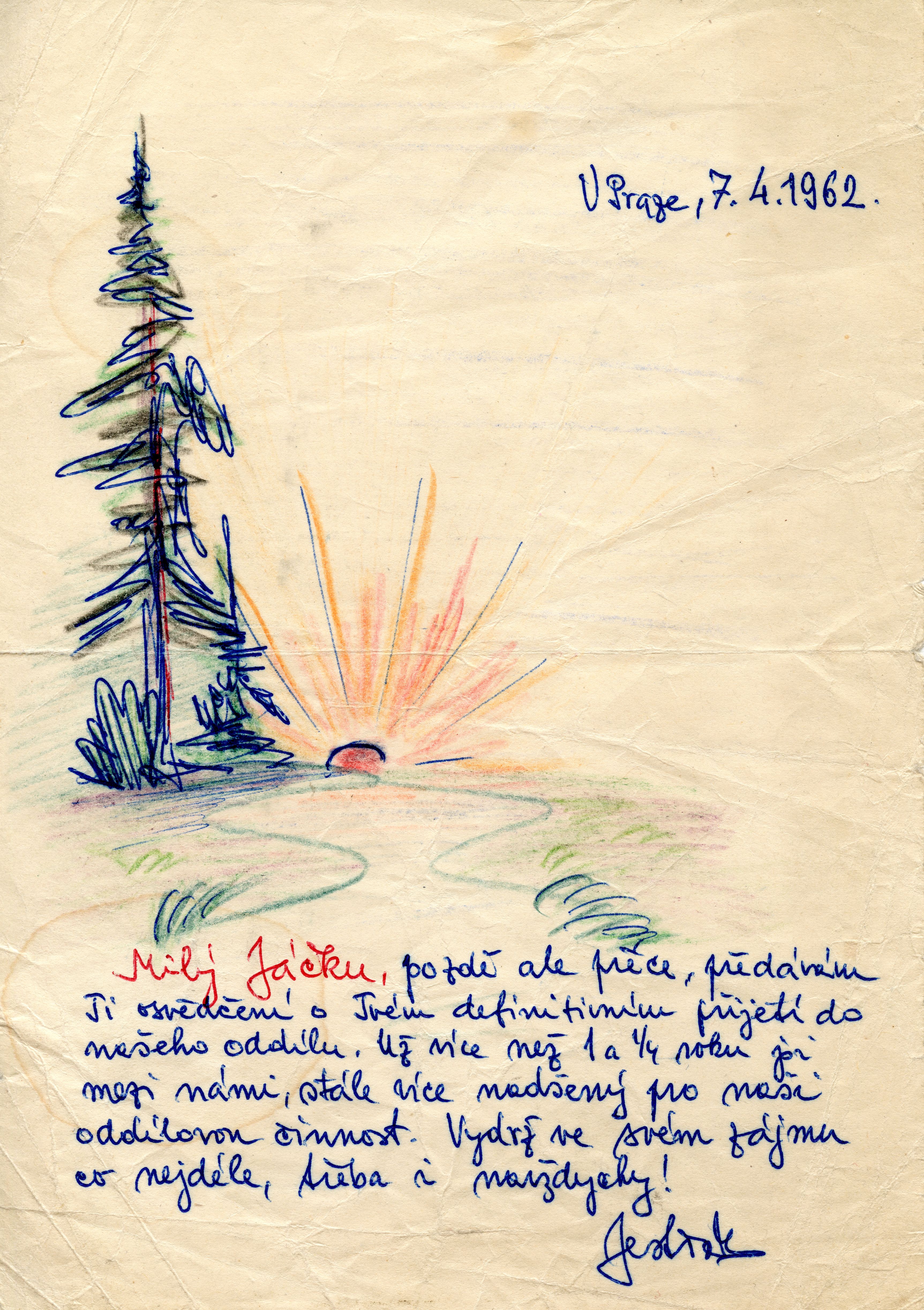 Jestřábův osobní dopis Jáčkovi. Archiv: Jaroslav Čvančara.