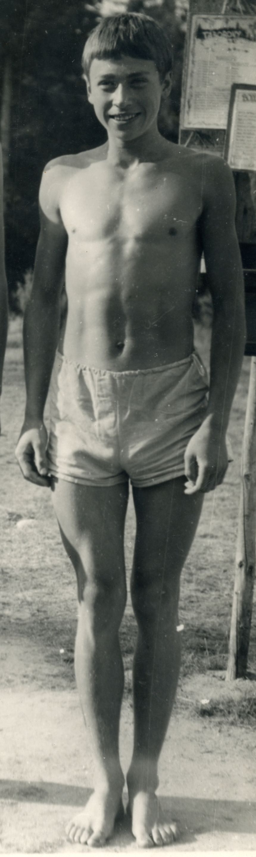 Červenec 1961, tzv. Modrý tábor. Jestřáb ve vůdcovském křesle, Jáček se usmívá v pravém horním rohu fotografie. Foto Richard Čapek.