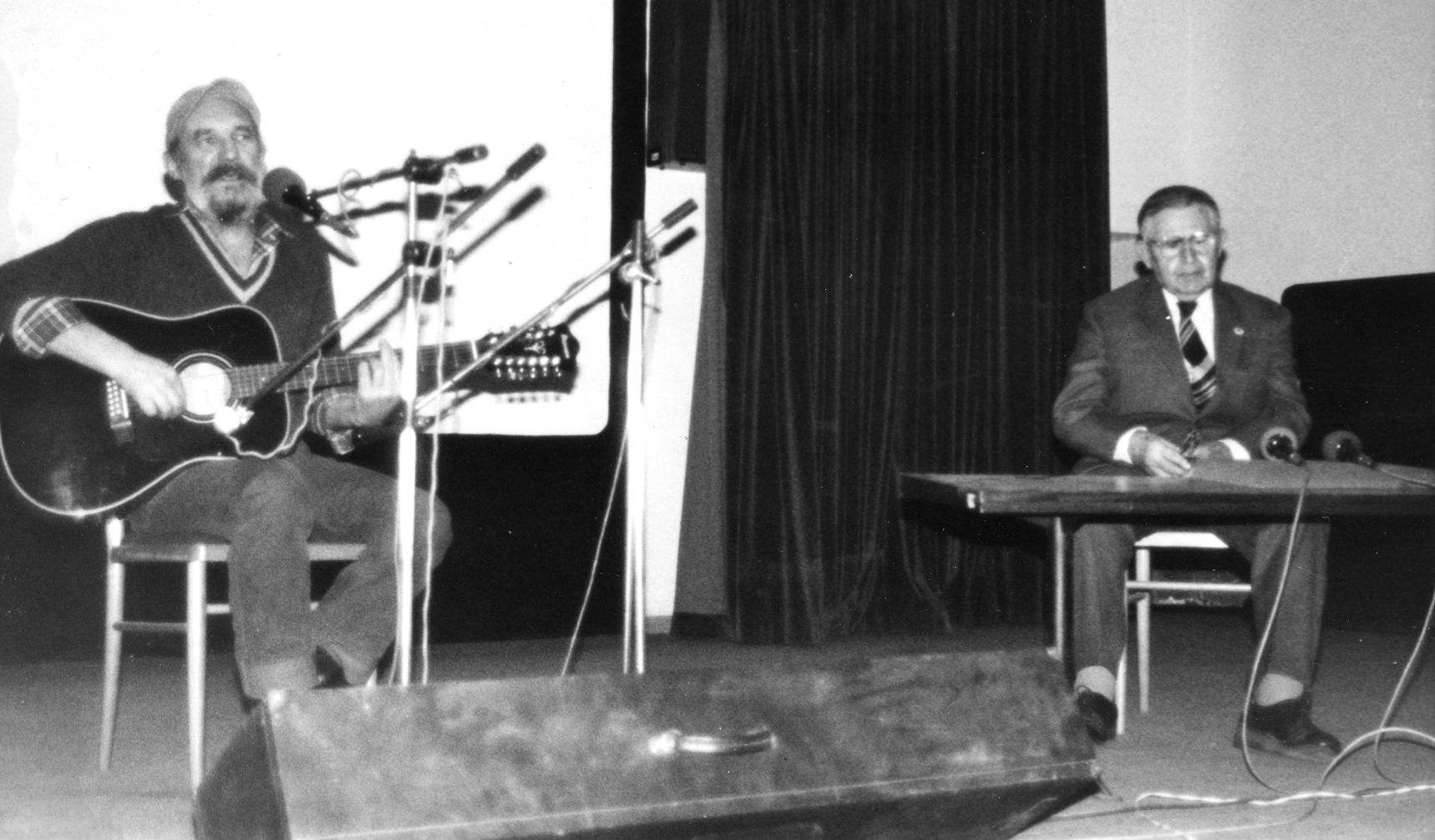 Premiéry filmu JESTŘÁB se kromě J. Foglara zúčastnil i trampský písničkář Wabi Ryvola. Zazněla jeho slavná píseň Rychlé šípy. Archiv: Jaroslav Čvančara.