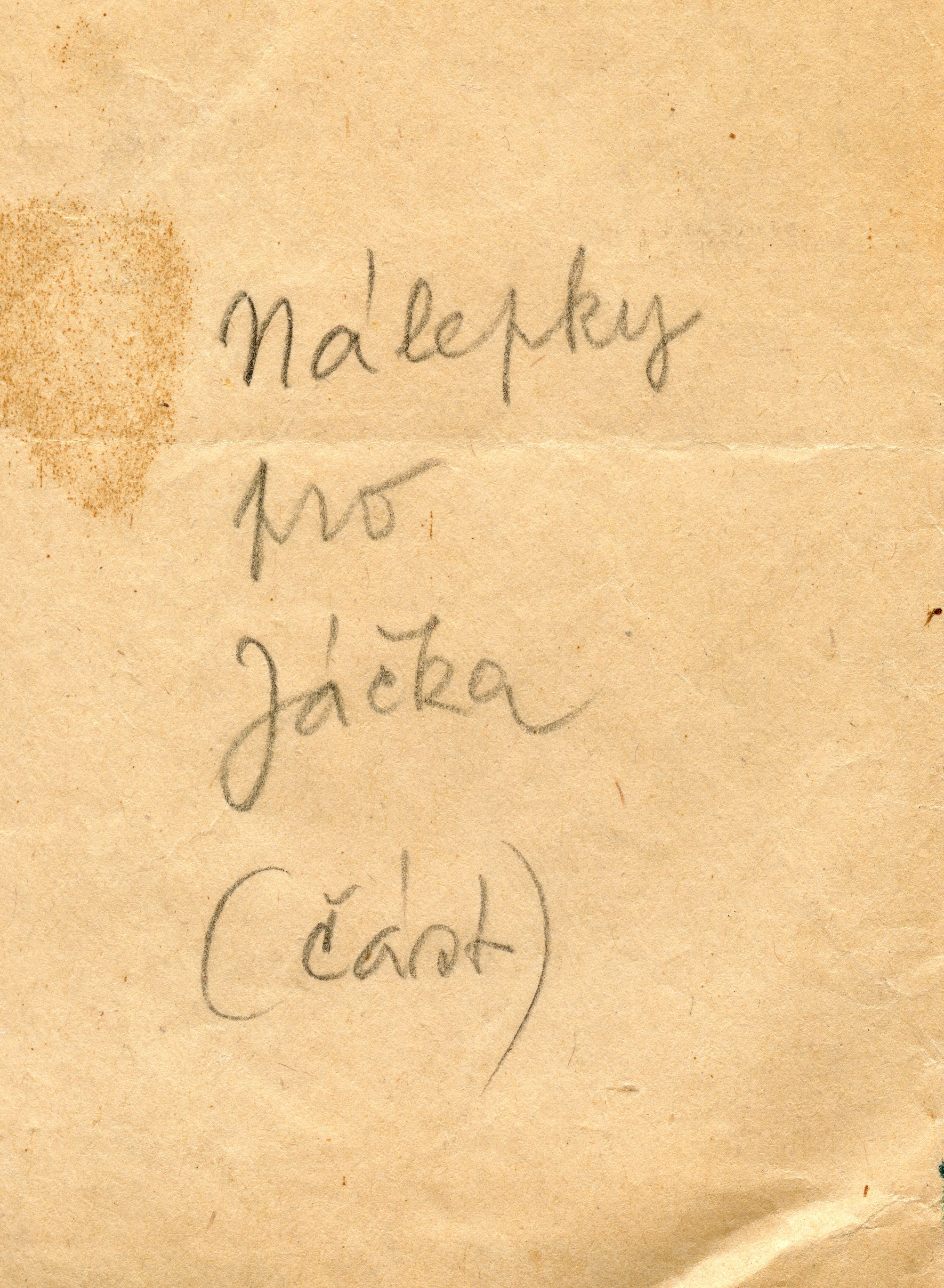 „Nálepky pro Jáčka“ - Jestřábem nadepsaná obálka. Kdo však nechce uvěřit, že soubor nálepek Jaroslav Čvančara získal osobně od Jaroslava Foglara, tomu ani tento relevantní důkaz stačit nebude... Archiv: Jaroslav Čvančara.