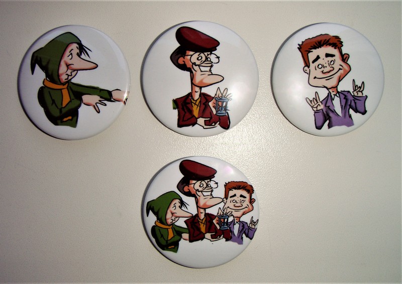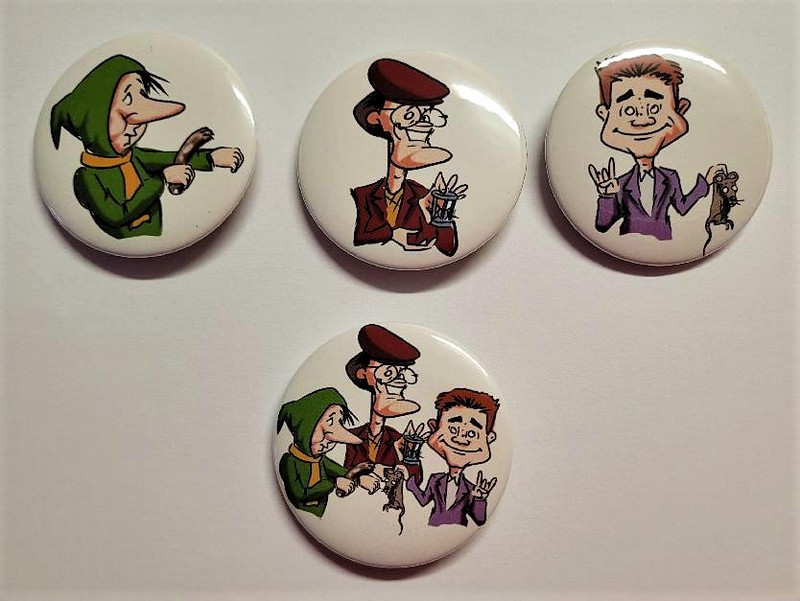 Již dříve vydané buttony s portréty členů Bratrstva Kočičí pracky od kreslíře Martina Hrona lze nyní zakoupit u Eduarda Pazourka ve zdokonalené verzi vylepšené o atributy BKP kočičí pracku a krysu a s drobnou retuší u Dlouhého Bidla.
