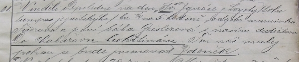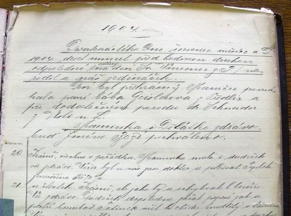 Hned tři červencové dny byly zásadními mezníky v rodině Foglarových. Roku 1911 17. července zemřel Jindřich Foglar. V roce 1907 6. července se narodil Jaroslav Foglar. A rok 1904 19. července se stal prvním dnem Zdeňka Foglara, prvorozeného syna manželů Marie (26. 12. 1877 - 18. 2. 1980; rozená Fišerová) a Jindřicha (11. 12. 1872 - 17. 7. 1911) Foglarových. V tu dobu měli Marie a Jindřich pět let po svatbě a opakovaně bydleli v Předlicích u Ústí nad Labem, kam se stěhovali z Prahy, když Jindřich Foglar pracoval jako úředník – obchodní cestující. Přízemní byt rohového domu č. 120/1 na nynějším Školním náměstí se tak stal svědkem Zdeňkova příchodu na svět a Jindřichova zápisu do rodinné kroniky: Devatenáctého dne měsíce července a. d. 1904, deset minut před hodinou druhou odpolední, /v úterý na den Sv. Vincence z P./ narodil se náš jedináček. Den byl překrásný. Mamičce pomáhala paní bába Geislerová z Předlic a při dodatečném porodu dr. Schneider z Ústí n. L. Maminka i děťátko zdrávo, buď Jméno Boží pochváleno. (Nebude bez zajímavosti zde připomenout, že o tři roky později narozený Jaroslav přišel na svět téměř ve stejný čas - v půl druhou hodinu odpolední.) 31. července pak pan Jindřich dále zapisuje: V neděli odpoledne na den „Sv.“ Ignáce z Loyoly /toho lumpa jezuitskýho/ ku ¼ na 5. hodině odjela maminka Fišerová (matka Marie Foglarové – pozn. redakce) a paní bába Geislerová s naším dudečkem do Chabařovic ku křtinám. Ten náš malej pohan se bude jmenovat Zdeněk. V únoru roku 1906 už trojčlenná rodina přesidluje opět do Prahy, do Benátské ulice čp. 1712, kde se 6. 7. 1907 narodí Jaroslav Foglar, aby do roku 1911 stěhování z Prahy do Předlic a zpět ještě několikrát zopakovala. Za záznamy v rodinné kronice vděčíme v naprosté většině Jindřichu Foglarovi, ale již večer v ½ 8. a 10 minut na Hod boží vánoční 1906 se poprvé „rozepsal“ malý Zdeněk. (V tomto případě však vynecháváme přepis záznamu a čtenáře odkazujeme výhradně na fotografii zápisu.) V srpnu 1910 se Foglarovi – již naposledy – stěhují z Prahy zpět do Předlic, do toho samého bytu, kde se narodil Zdeněk. Toho v září čeká zápis do školy, kam to má z domova jen pár kroků – škola z roku 1897 stojí v těsném sousedství (na dobových fotografích ještě není postaven dům mezi domem Foglarových a školou): Tedy od 1. srpna 1910 zase zůstáváme v Předlicích v našem starém bytě a náš Zděnda malej jde zítra dne 12. září 1910 v pondělí k zápisu chudinka – do německé školy. Dnes dne 12. září 1910 v pondělí /bylo jasno/ byl náš Zděnda s máti a Vávou (Jaroslavem – pozn. redakce) ve škole u zápisu. Lze se domnívat, že pohlednici poslanou do Předlic 22. 5. 1911 tatínkem si již školák Zdeněk, v tu dobu žák 2. třídy, přečetl sám. Pan Jindřich v samém úvodu psaní uvádí: Tak Váš tátile je zdráv a dobře se mu vede … Bylo to pouhé necelé dva měsíce před tím, než Jindřich Foglar 17. 7. 1911 náhle umírá při léčebném pobytu v Poděbradech. Nejstarším mužem v rodině se tak najednou stává malý Zdeněk a svým (druhým) zápisem v roce 1911 vlastně kroniku rodiny Foglarových uzavírá: V červnu 1911. To bila máti ještě zdravá – a teď v červenci je uš moc nemocná. 1911 17 července zemřel náš drahý tatíček v Poděbradech. Včerá večír jsem dostal od ježíška tuški a dvě knihy. Sláva dostal od ježíška tuški a dvě knihy. Sláva stonal na planý neštovice je to pár dní. Veselé Vánoce! Popis dalších roků Zdeňkova života by již přesáhl záměr tohoto článku, jistě však stojí za další budoucí zpracování. Předlický rodák na rozdíl od svého mladšího bratra založil rodinu a zanechal po sobě potomky. Zdeněk Foglar zemřel 6. 11. 1967 v Praze a je – spolu se svojí ženou Janou – pohřben na Olšanských hřbitovech. Poděkování: †Jindřichu Foglarovi za vedení rodinné kroniky. † Václavu Noskovi – Windymu za poskytnutí (2011) dobové barevné pohlednice Předlic. Tomáši Hromádkovi – Krizmenovi za poskytnutí (2011) dobové černobílé pohlednice Předlic. Ivanu Radovi – Slídovi za poskytnutí informace o přesném umístění hrobu Zdeňka Foglara. Foto (2006, 2007, 2011) dobových materiálů a foto (2024) Předlic a hrobu: Milan Lebeda – Alpín Originály reprodukovaných dokumentů (rodinná kronika, pohlednice Zdeňku Foglarovi) jsou uloženy v Literárním archivu Památníku národního písemnictví.